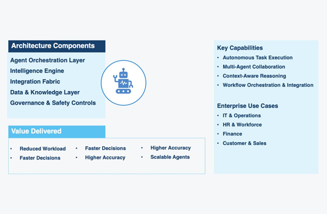 A platform for enterprise agentic AI allows you to design, deploy, and manage AI agents that can make decisions, reason, and perform complex tasks across your entire organization. In addition to handling end-to-end business processes with goal-oriented behavior, it also acts as a unified “operating system” for AI operations. It incorporates governance, integration, and control.